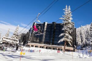 The Eveline Resort & Spa offers a complementary shuttle to and from Palisades Tahoe, with extended hours for SGO Winter Meeting attendees.