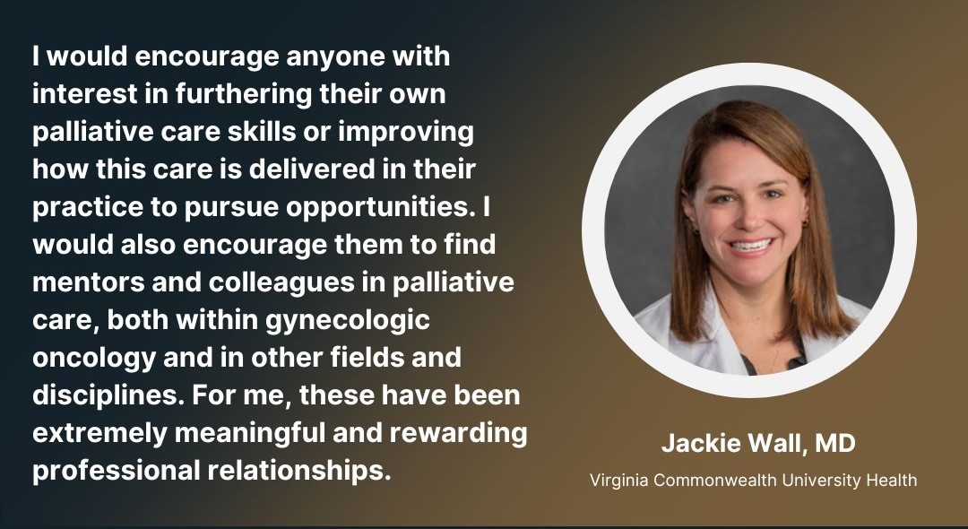Hear from Jackie Wall, MD, as she shares what it means to be a palliative care champion, and why this role is essential in improving the lives of patients with gynecologic cancers.